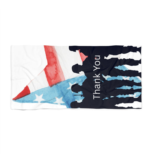 Thank You Patriotic Beach Towel - Gift for Veterans, Red White Blue Towel, Beach Essential, Pools...