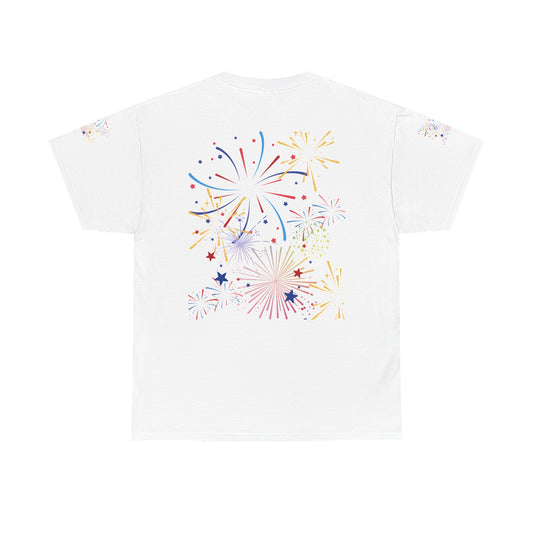 USA Sunflower Fireworks Tee | Unisex Heavy Cotton T-Shirt, American Pride, 4th of July, Patriotic...