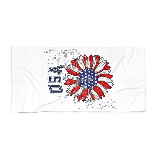 Patriotic Sunflower Beach Towel for Summer Fun, USA Theme, Beach Day Essential, Ideal for July 4t...