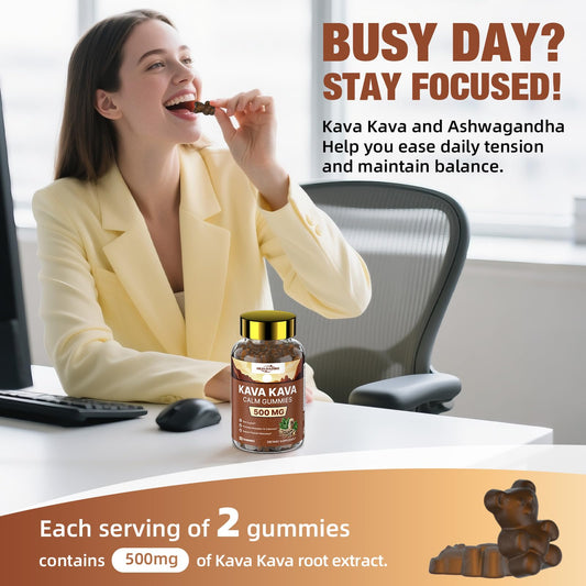 Kava Kava Root Extract Supplement: Natural Kava Gummies with L Theanine, Ashwagandha and GABA for...