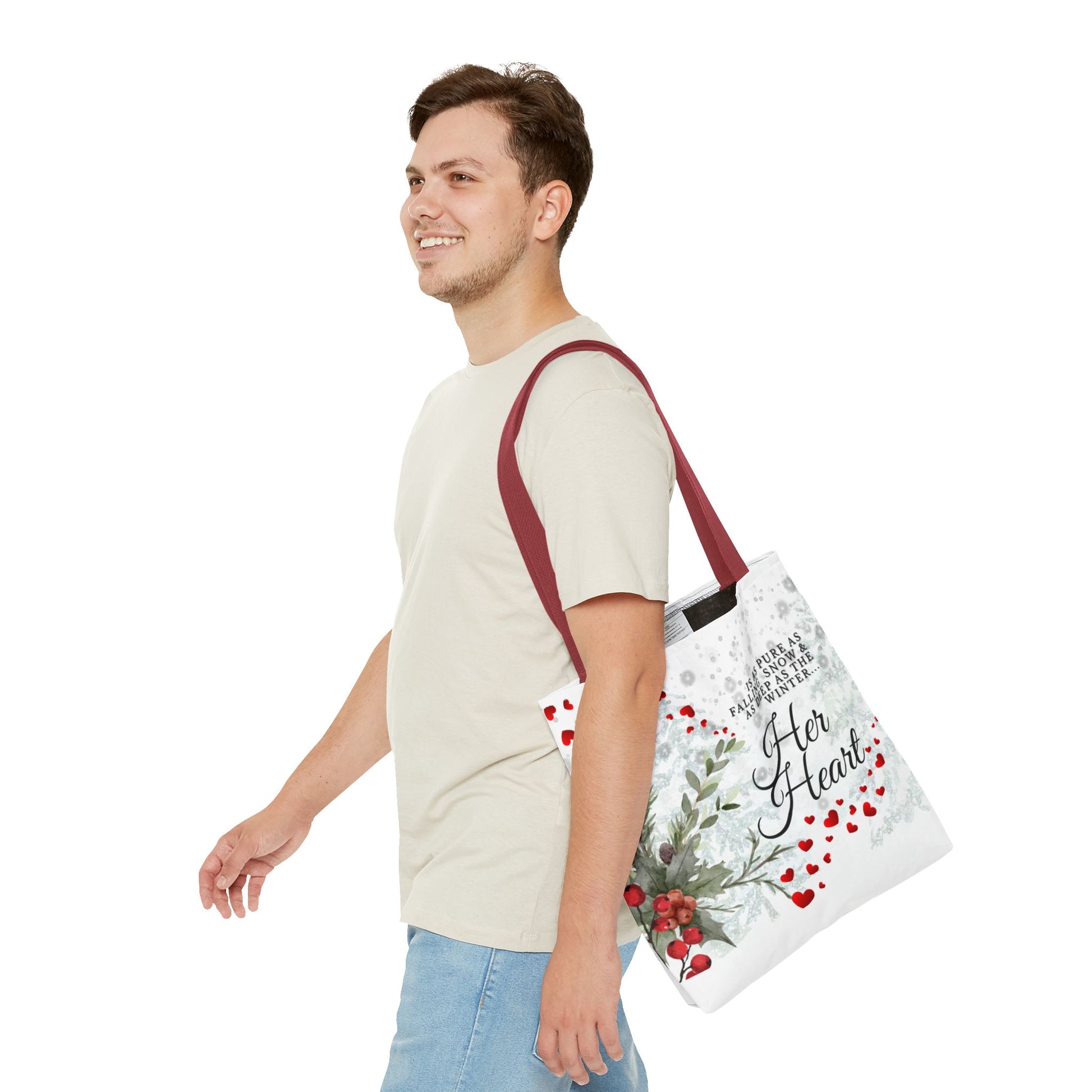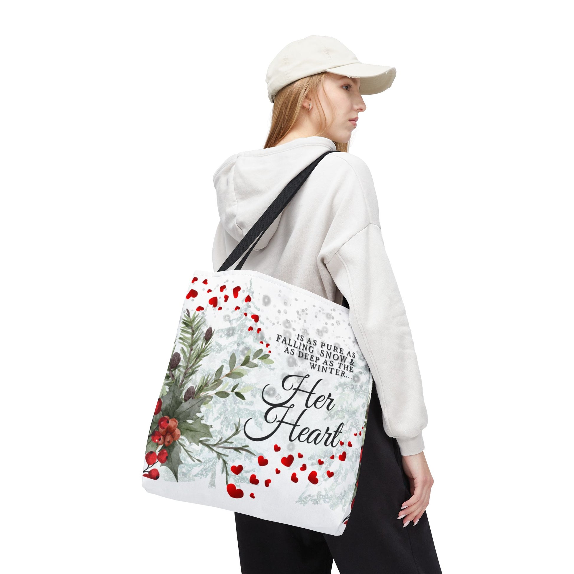 Her Heart Winter Floral Tote Bag — Romantic Holiday Gift