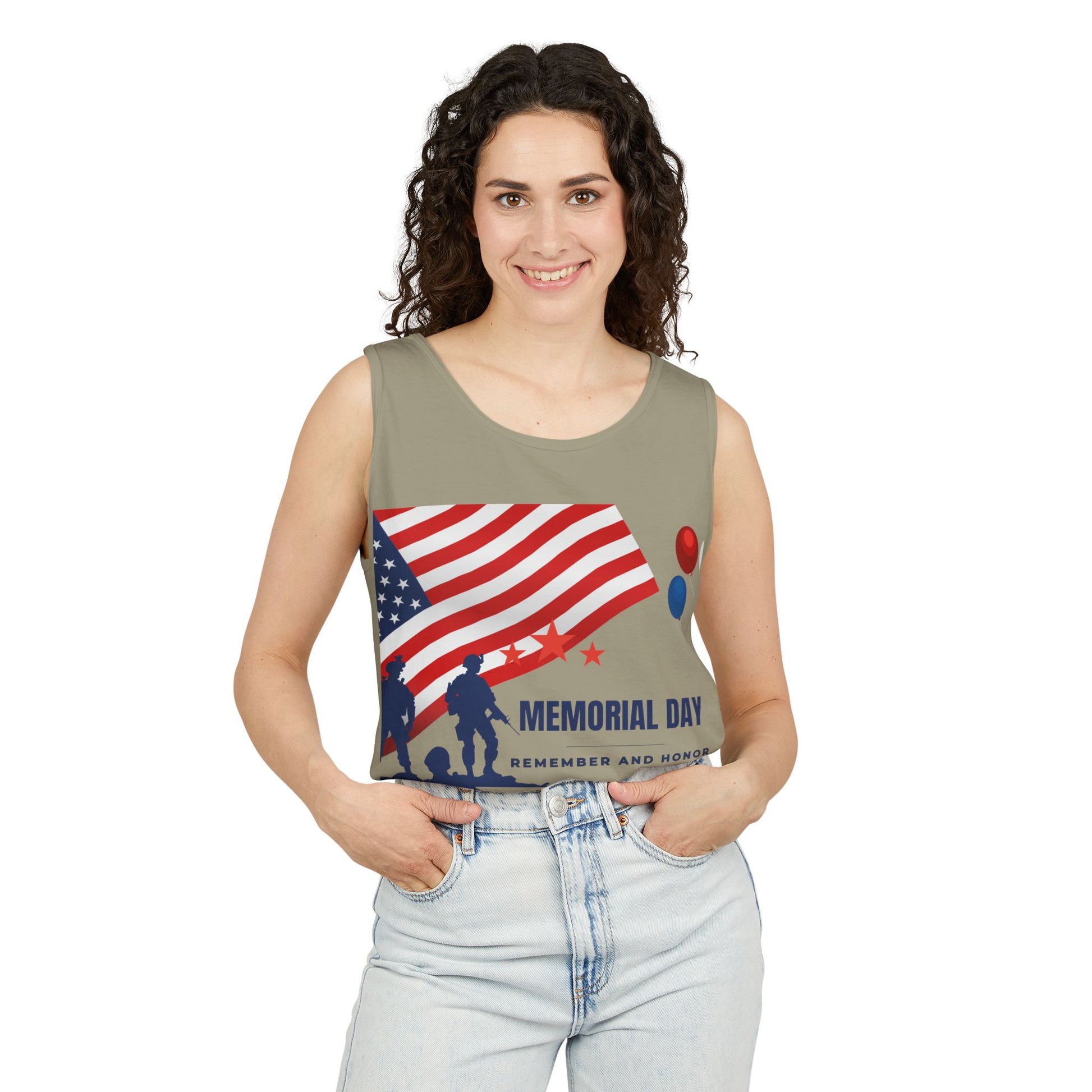 Celebrate this Memorial Day with our versatile Unisex Garment-Dyed Tank Top. Crafted for comfort and style, it features a soft color and relaxed fit that makes it perfect for warm weather gatherings, barbecues, or casual outings. This tank top not only honors those who served but also adds a patriotic touch to your wardrobe. Ideal for anyone who loves to show their support for veterans and embrace a spirited atmosphere during holidays like Memorial Day, Independence Day, and Veterans Day. Gift it to friends and family who cherish freedom and appreciate meaningful designs in their clothing.